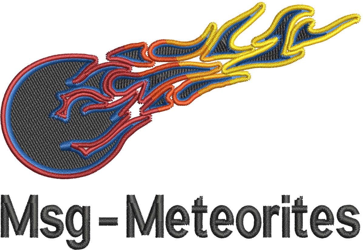 Embroidered to left chest with Msg-Meteorites logo, and to both sleeves with Msg-Meteorites text.
